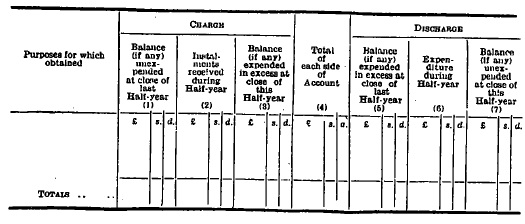 (2.) The expenditure of each quarter through the Subsidiary Account shall be tabulated and classified in a separate book of account so as to admit of the totals under each head being posted directly to the proper account in the ledger. If any of such expenditure is primarily advanced out of revenue, but is payable out of capital or borrowed money, the recoupment to be made in respect of such capital expenditure shall be made as directed in Article 11 of this Order. | ||||||||||||||||||||||||||||||||||||||||||||||||||||||||||||||||||||||||||||||||||||||||||||||||||||||||||||||||||||||||||||||||||||||||||||||||||