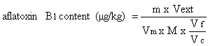 The content in micrograms of aflatoxin B1 per kg of sample (ppb) is given by the formula: | |||||||||||||||||||||||||||||