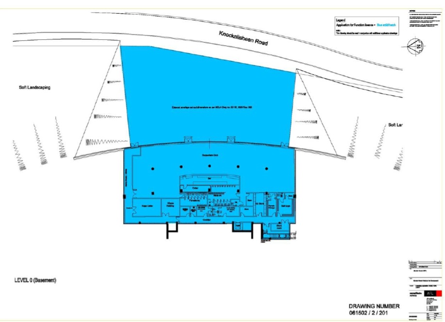 Maps referred to in Regulation 3(2). The areas of Thomond Park prescribed for the purposes of paragraph (b) of section 21(4) (function) are indicated in blue.