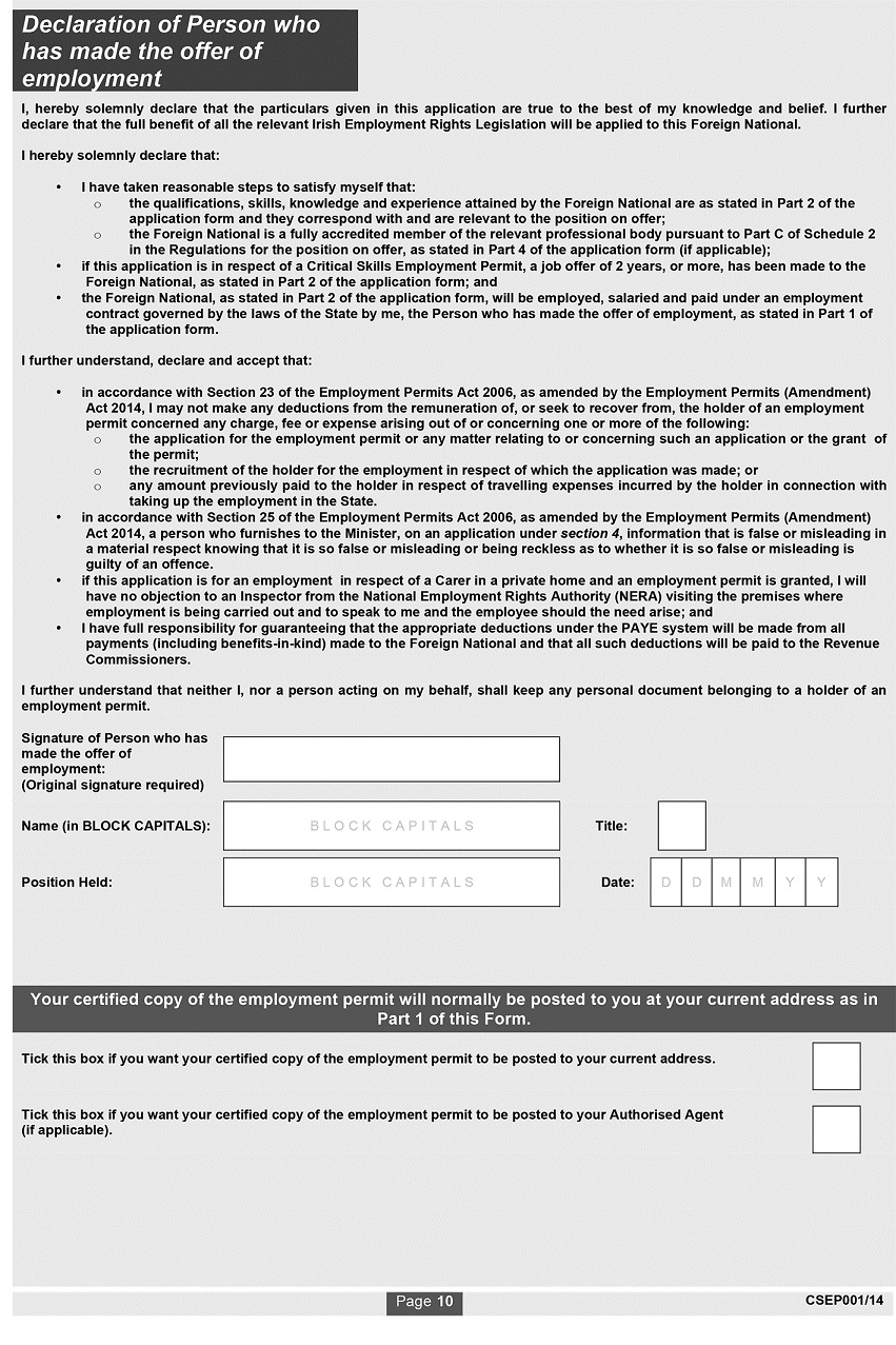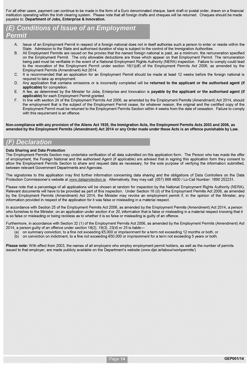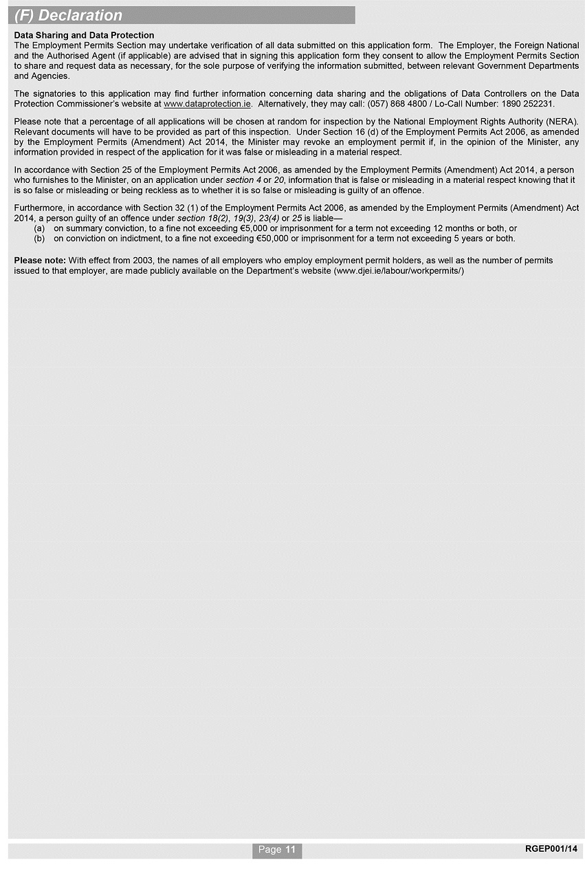 Application form for grant of Dependant/Partner/Spouse Employment Permit | ||