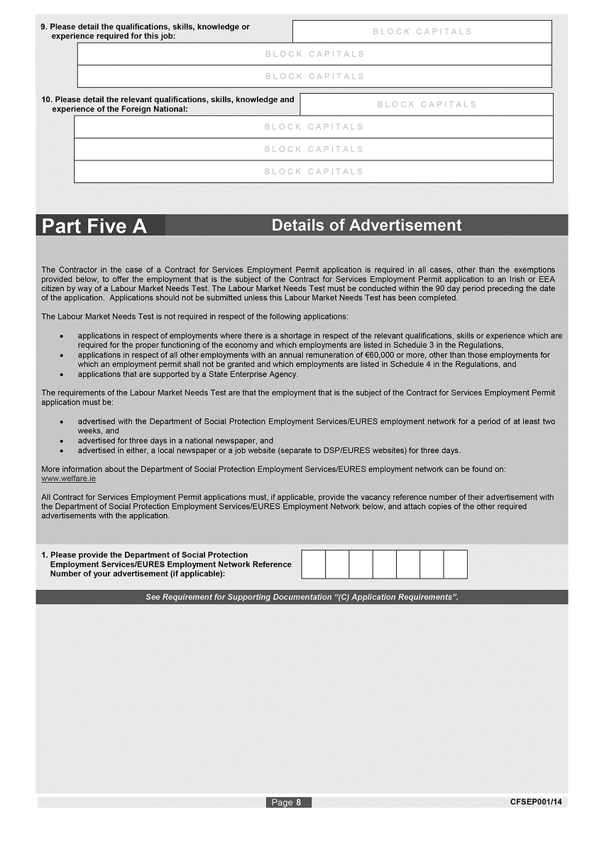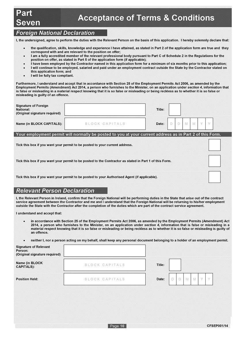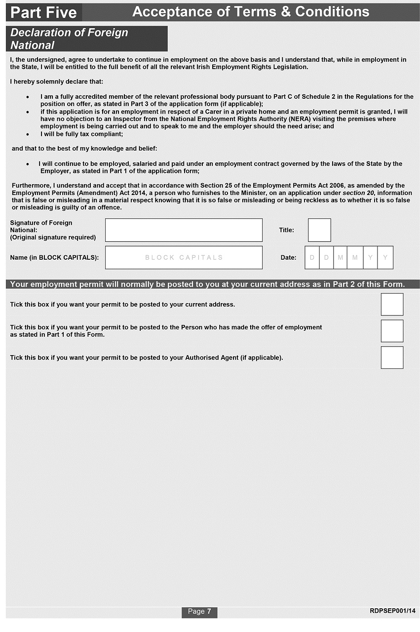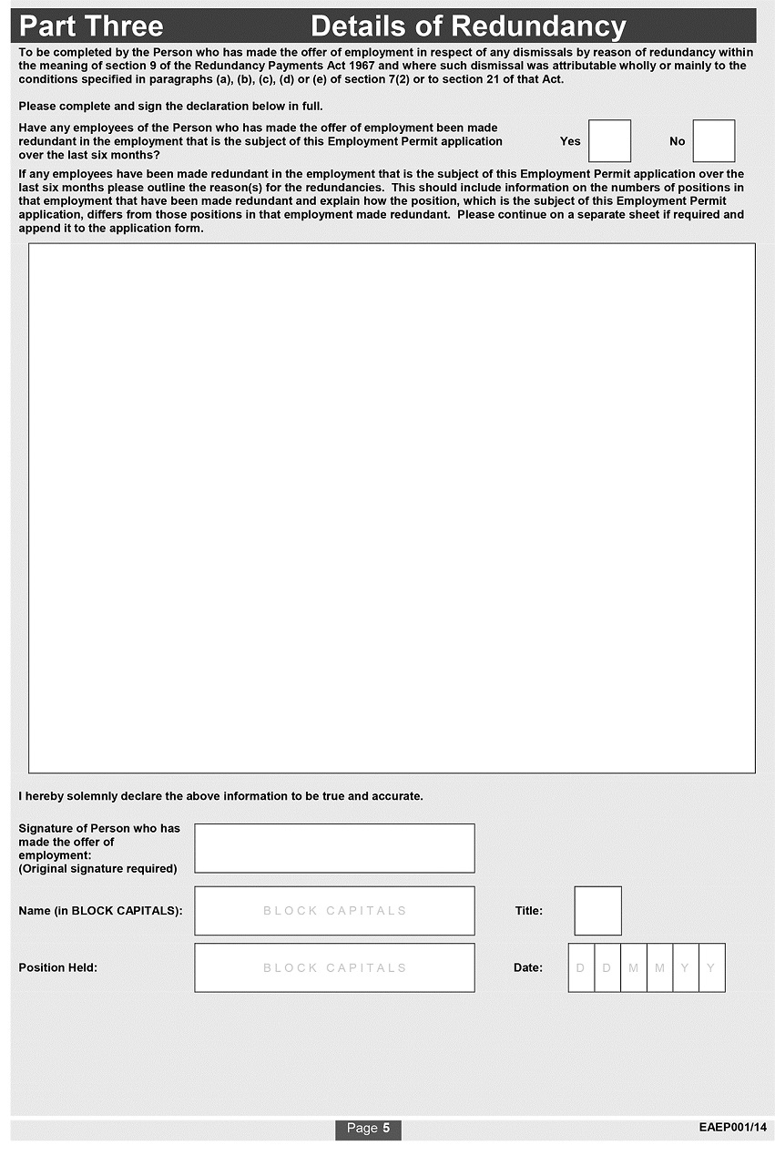 Application form for grant of Dependant/Partner/Spouse Employment Permit | ||