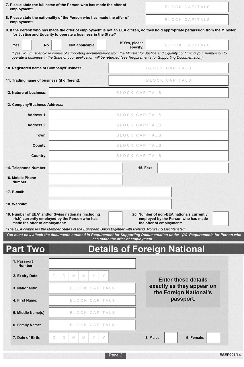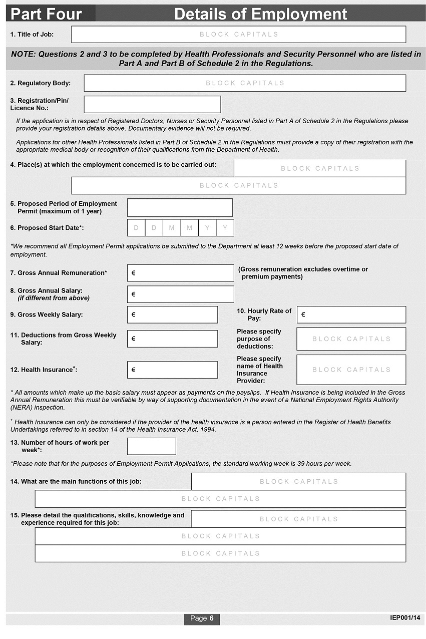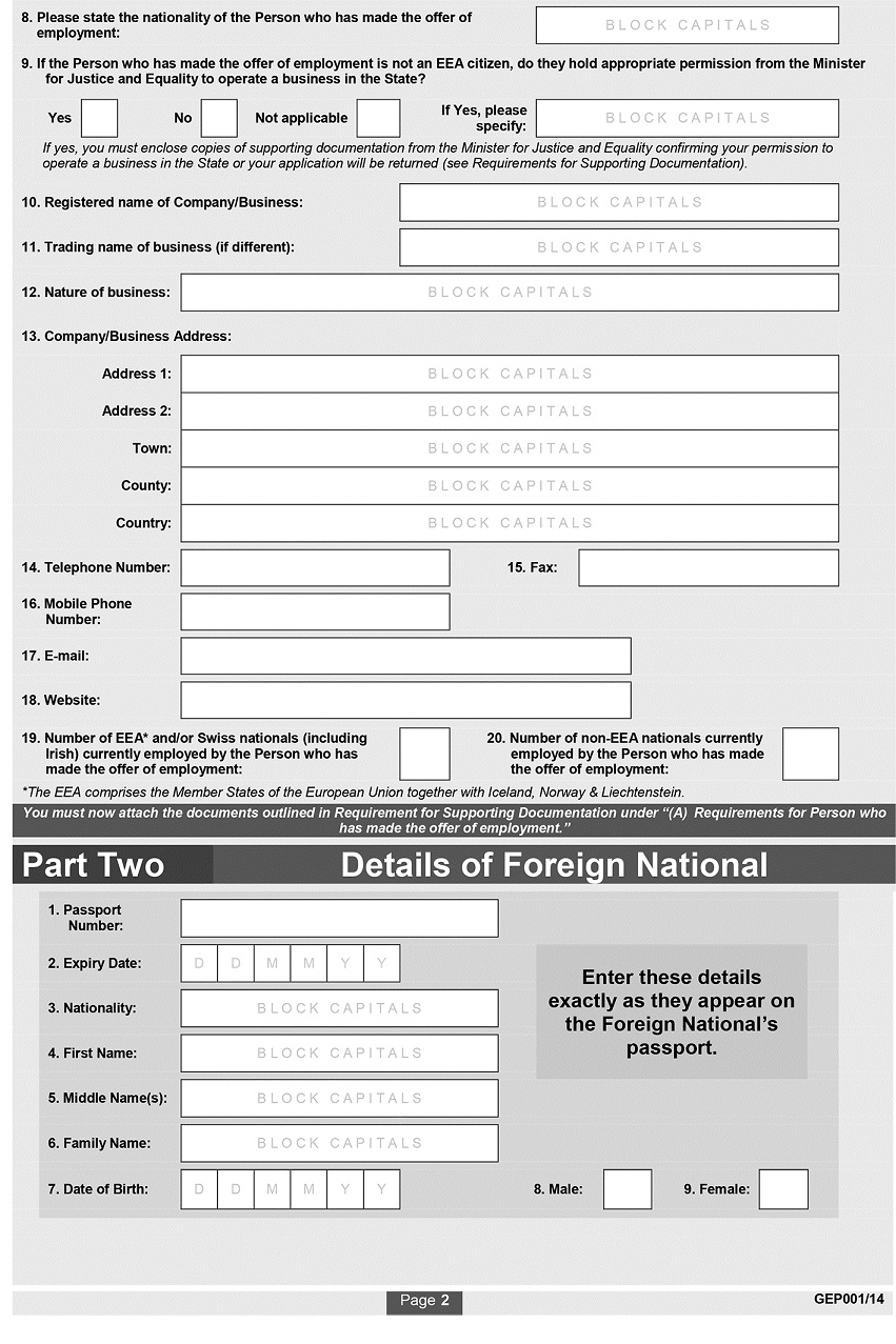 (2) The following information and documents are prescribed for the purpose of section 6(g)(i) of the Principal Act and shall be provided with an application for the grant of an employment permit: | ||