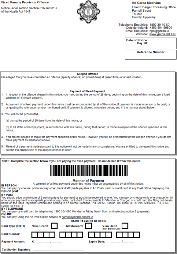 S.I. No. 536/2020 - Health Act 1947 (Fixed Payment Notice and Dwelling Event Provisions) (Covid-19) Regulations 2020